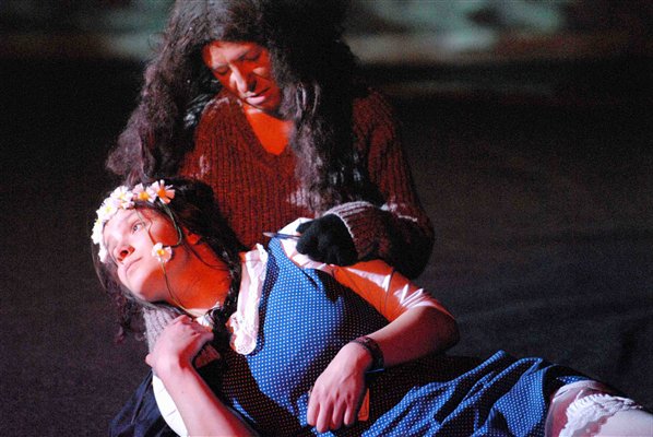 Spieler: Laurenz Raschke (Kay, Rote Blume, Prinz Kay, Räuber, Rentier), Iris Teske (Gerda), Andreas Klinger (der Einäugige, der Finne), Ula Grzela (die Schneekönigin, die Blumenfrau, der Räuberhauptmann), Eva Sättler (Prinzessin Akuti, die Räubertochter), Mirjam Novak (Gelbe Blume, Weißes Huhn)